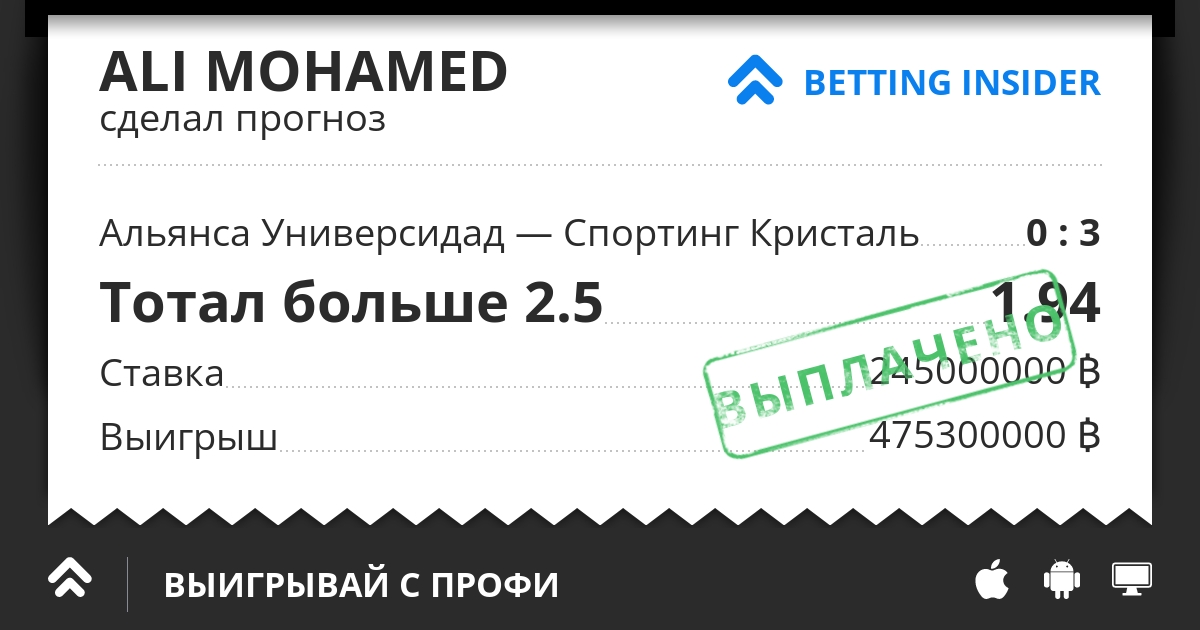 Ставка №2 из 5p/s первая ставка стоит на этот же матч ТБ2....гол забивают, проходит 2 ставки, я не надеюсь и не жду гол, он просто здесь будет, если нет, значит я чего то не понимаю в футболе...