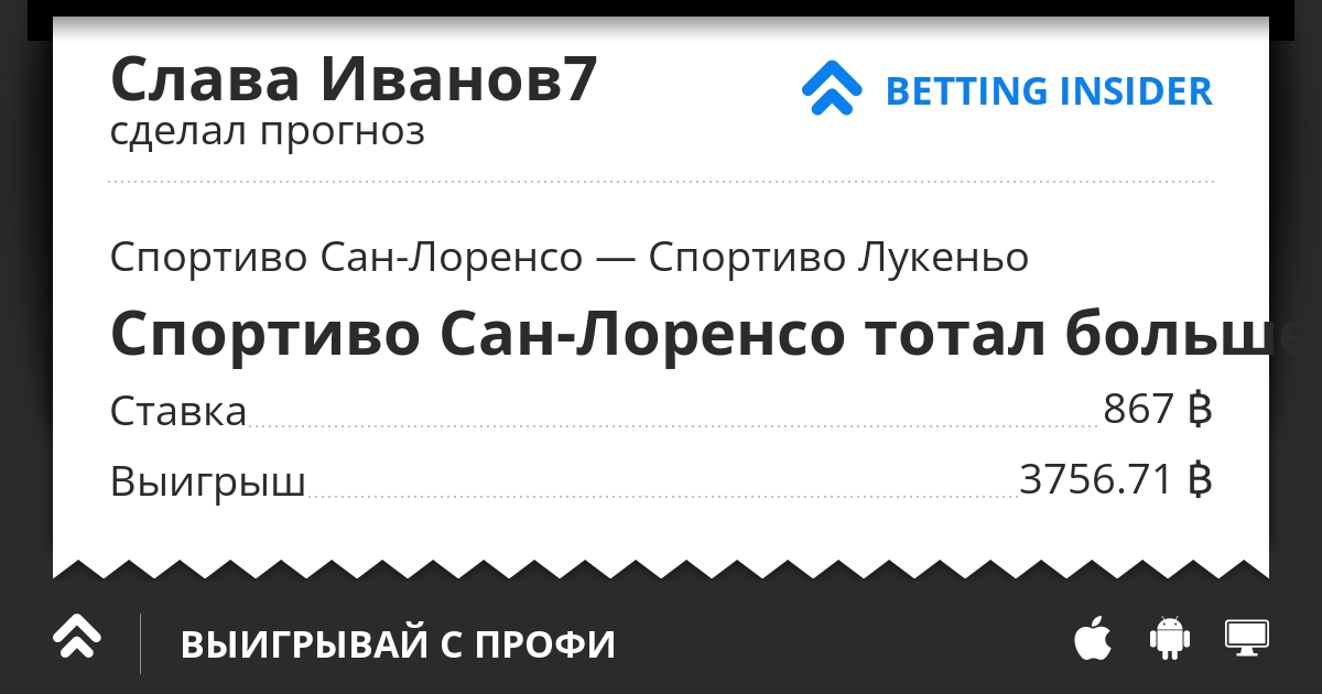 Влетаем посреди матча в прогноз. Хозяева смотрятся неплохо, смело берём их гол, шансы велики. В ОЗ не верю, но это Парагвай, все может быть . Спортиво лукеньо не тратит много сил, у них впереди их местная ЛЧ. Всем удачи и хороших ставок. Так же можно взять тотал 1.5 меньше