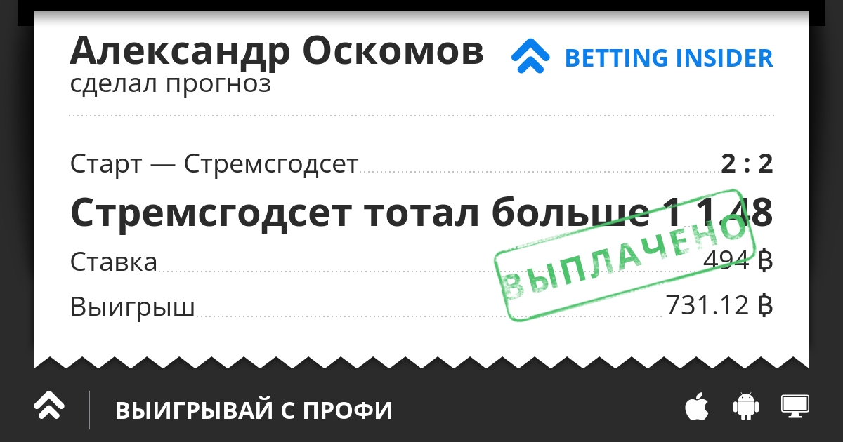 Гости середняк вышки, а вот хозяева возвращались из более низкой лиги не без боя. В Старте потеря лучшего бомбардира и хавбека, в стремгодсете по составу все хорошо. Первый тур сезона и это не плохой шанс для гостей начинать набирать очки, да и размочить наконец-то серию из очных встреч в ничью. Предположу так же, что гости смогут оформить и тб2
