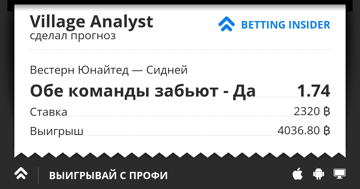 Практически не думал, когда выбирал данное пари... Что Вестерн, что Сидней умело забивают под прессингом и теперь им предстоит сыграть друг против друга. По личным встречам команды не часто обмениваются голами, однако, сегодня им все позволяет это сделать. Вестерн сейчас на пике и темп сбавлять никак нельзя. Статистика последних встреч шикарная, как забивают, так и пропускают от разных по динамике команд. Сидней сейчас, конечно, не такой как раньше, но команде упорства по-прежнему не занимать. Против сильных команд данный клуб играет осторожно, но если забивает, то *************. Именно на это сегодня я рассчитываю.