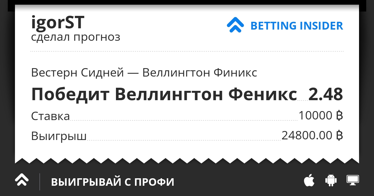 Доброго дня всем! При анализировании ставок руководствуюсь статистикой команд анализирую все на сколько могу за частую рискую имеется всегда шансс проиграша ну изучение статистики дает превосходство в предугадовании исхода. В даном матче фаворит Веллингтон Финикс по моему мнению она стабильно забивает голы и играет окуратно по этому мой прогноз на матч п2 думаю счет будет 0:1. В моих ставках всегда присутствует риск по этому будте окуратны.